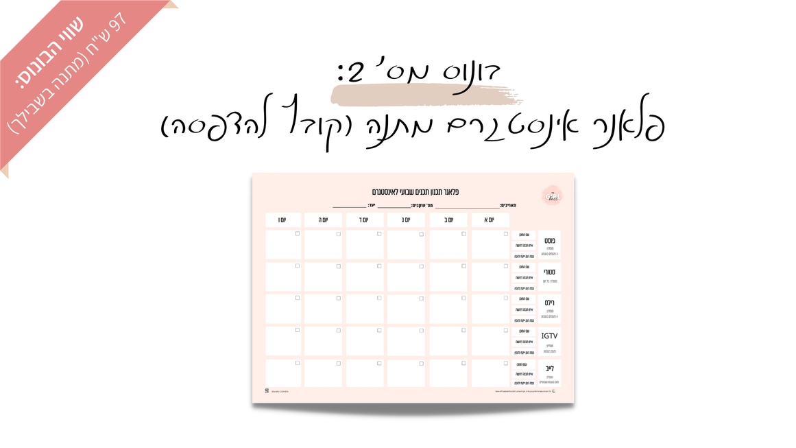 בונוס 2: פלאנר תכנון תכנים לאינסטגרם להדפסה (שווי 97 ש"ח).