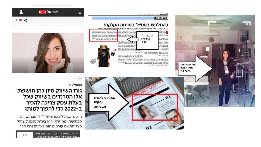 מאז ניהלתי מאות קמפיינים של החברות הגדולות במשק, השקות גדולות ומסיבות עיתונאים. וב-8 השנים האחרונות נכנסתי בעצמי לעולם העסקים והקמתי סוכנות שיווק דיגיטלי מצליחה, אתר אופנה ואקססוריז שכיכב בכל מדורי האופנה, מותג משקפי שמש בינלאומי, מיזם אופנה בתחום השופינג אונליין ואפילו רכשתי מכון יופי כושל והפכתי אותו לסיפור הצלחה תוך 3 חודשים בלבד (בלי שום ידע או שם בתחום).